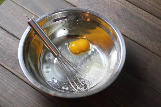 1、鸡蛋加糖打散融化,倒入牛奶搅拌均匀。